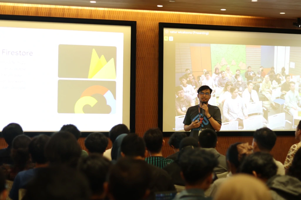 Selain memberi dukungan finansial, Rumahweb, yang diwakili oleh Catur Wicaksono selaku Developer Rumahweb, juga membagikan ilmu mengenai Cloud Firestore dan fitur recovery yang membantu developer ketika melakukan pengembangan aplikasi.